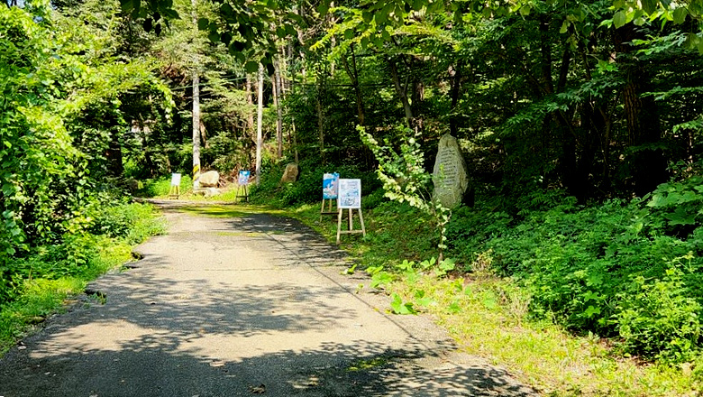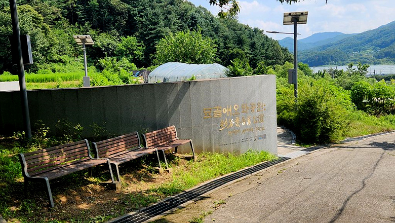 둘러본후 계속 이어지는 숲길을따라 목왕 2리 정류장을 지나