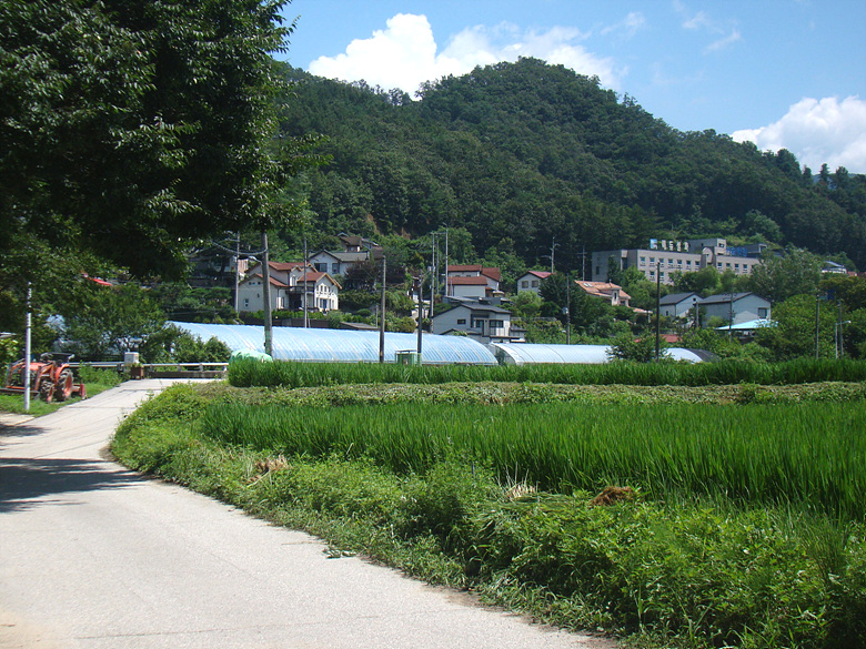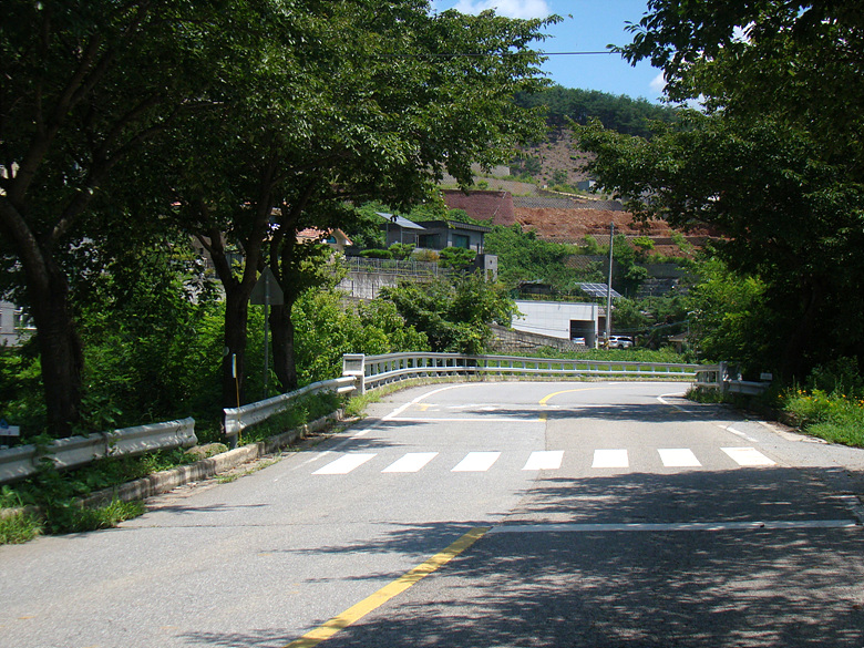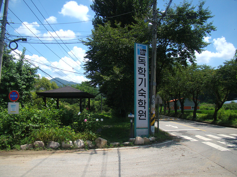 나무그늘이 있으면 쉬어가며 마을안길을 벗어나 에듀기숙학원