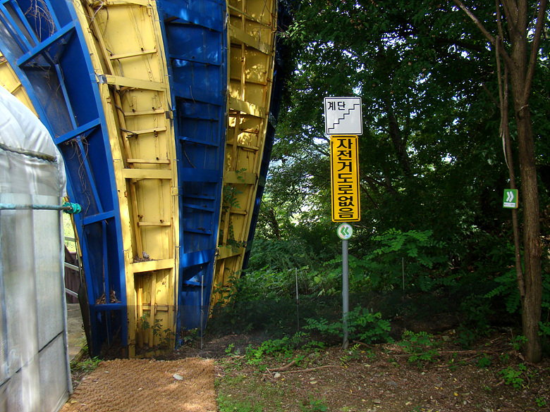더딘 발걸음으로 시원함을 느끼며 터널을 나서는데 저만치 대형공사가 진행중