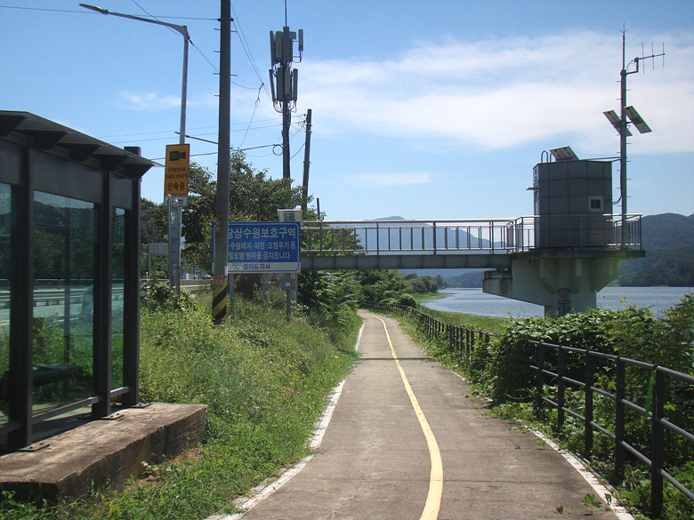 내려서며 다시 물소리길 중복구간인 자전거길을따라 덕구실교를건너 강변길을 지나는 동안 잠시