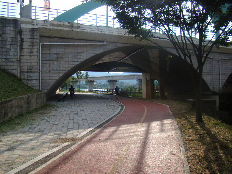 공원을 나서서 자전거 길을따라 복포과선교 밑을 지나면서 공사중 표시를